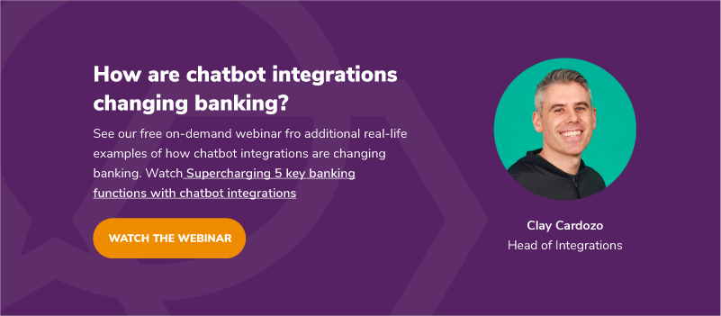 See our free on-demand webinar for additional real-life examples of how chatbot integrations are changing banking: