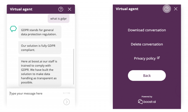 Functionality can be built into a virtual agent allowing customers to delete an entire conversation directly in the chat window.